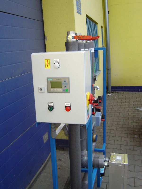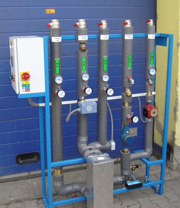Stanica je pripojená na prívod horúcej vody cez hlavnú ru?nú uzatváraciu armatúru, filter a regula?ný ventil s havarijnou funkciou, regulujúci prietok vody stanicou a umož?ujúci odstavenie stanice v prípade vzniku havarijných stavov. Z regula?ného ventilu prúdi primárna voda pod?a požiadavok odberu do výmenníkov TÚV. Z výmenníkov TÚV je voda vedená do vratného potrubia. Za výmenníkmi TÚV je mera? tepla. Vo vratnom potrubí je spätný ventil uzavierajúci stanicu z vratnej strany pri havarijných stavoch, meracie miesta a hlavný uzáver.